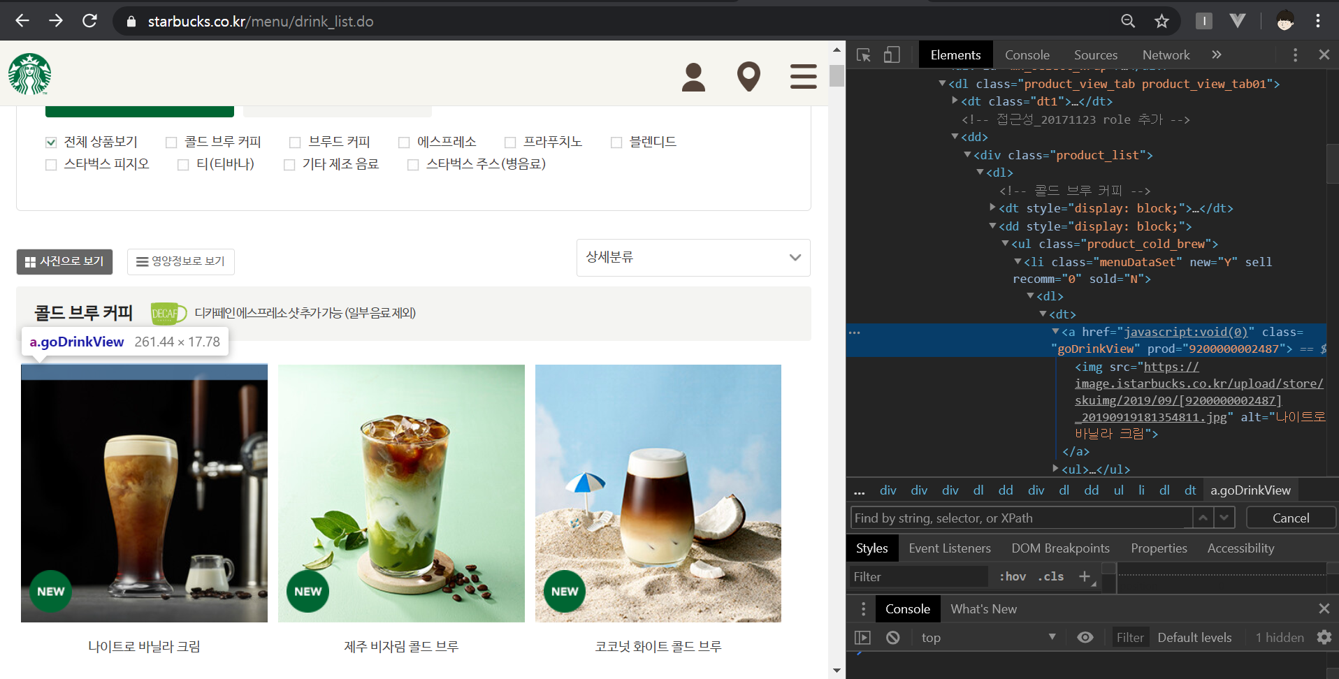 dr.get("https://www.starbucks.co.kr/menu/drink_list.do")